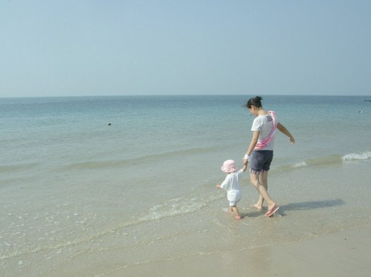 海灘上留下了無數(shù)指尖大小的小孔隙,出于好奇,我蹲下來靜靜地觀察,發(fā)現(xiàn)有小小的螃蟹從小孔隙里爬出來,象我一樣好好沐浴燦爛陽光、溫暖海風;有些頂著米粒大的沙團推出小孔隙,原來是小螃蟹寶寶在造穴,多勤勞呀,從小就養(yǎng)成了愛勞動的習慣;最好玩的是好不容易逮著一只螃蟹寶寶放在手心任其橫行霸道,直癢得我開懷大笑……..